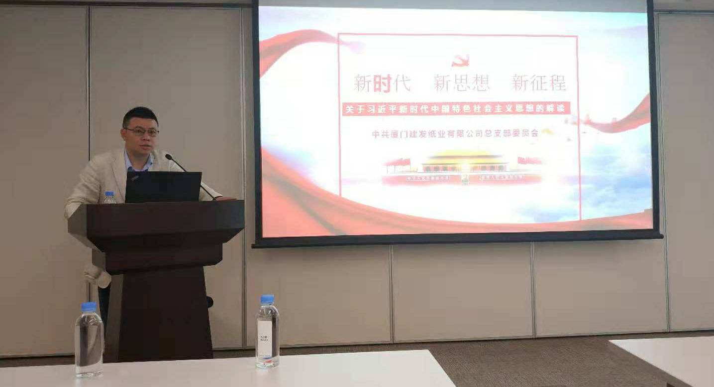 2018年10月23日,金年汇官方版网站登录入口-金年汇(中国)党总支书记程东方同志在建发大厦23楼4号会议室以《新时代、新思想、新征程——关于习近平新时代中国特色社会主义思想的解读》为主题给纸业公司的党员们做了一次专题党课分享。