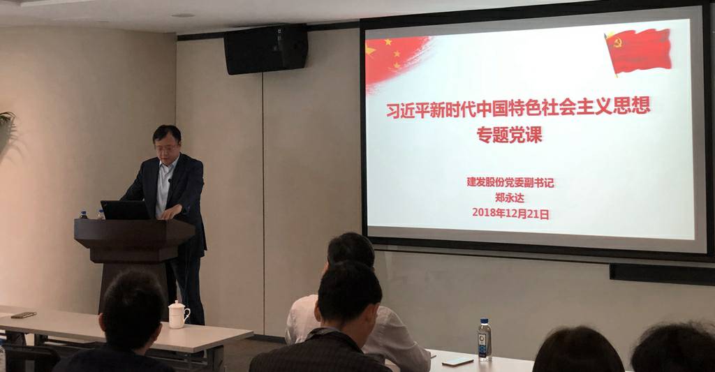 2018年12月21日,金年汇官方版网站登录入口-金年汇(中国)党委副书记郑永达同志在建发大厦23楼大会议室给纸业公司的党员们做了一次习近平新时代中国特色社会主义思想专题的党课分享。